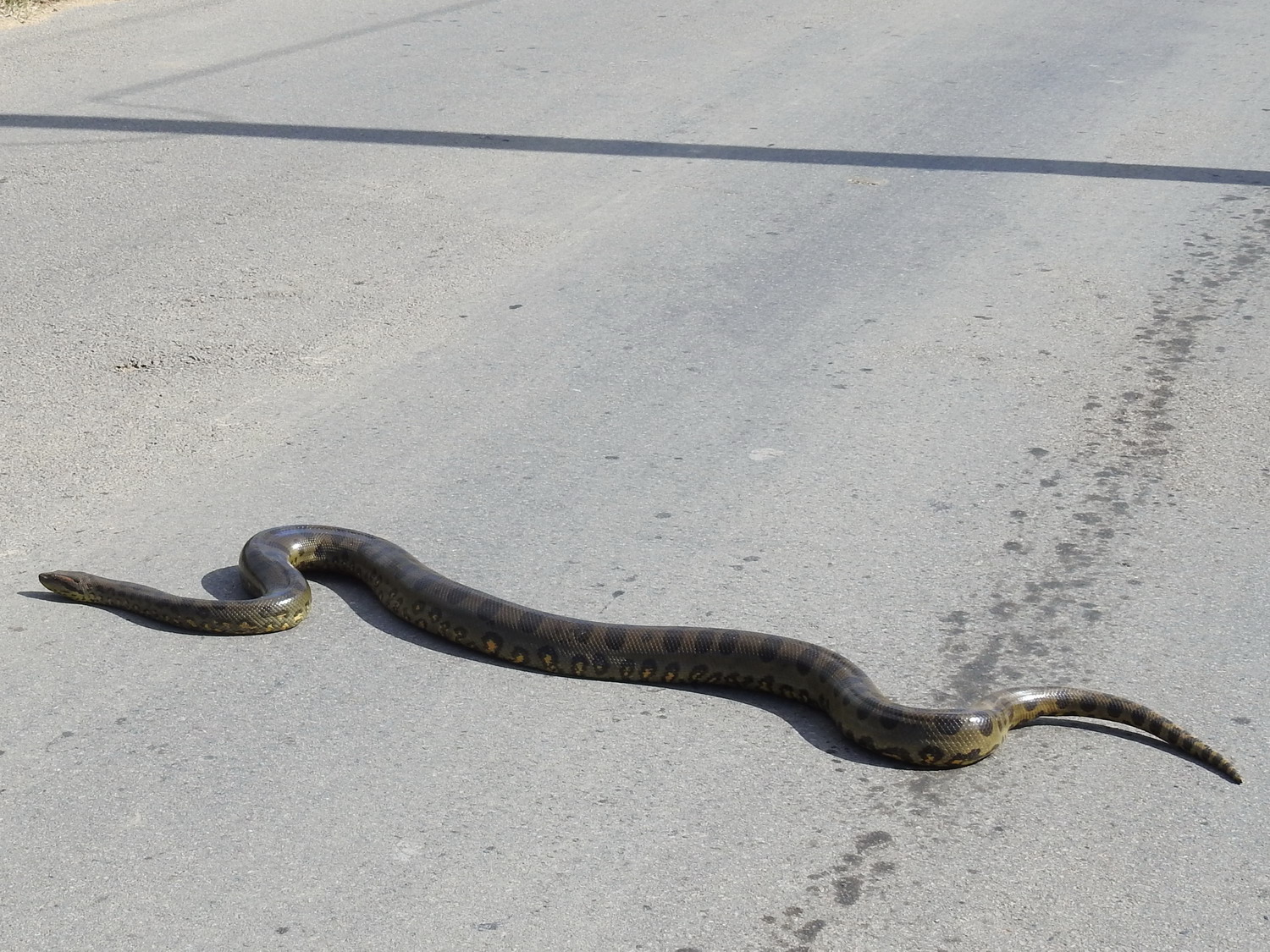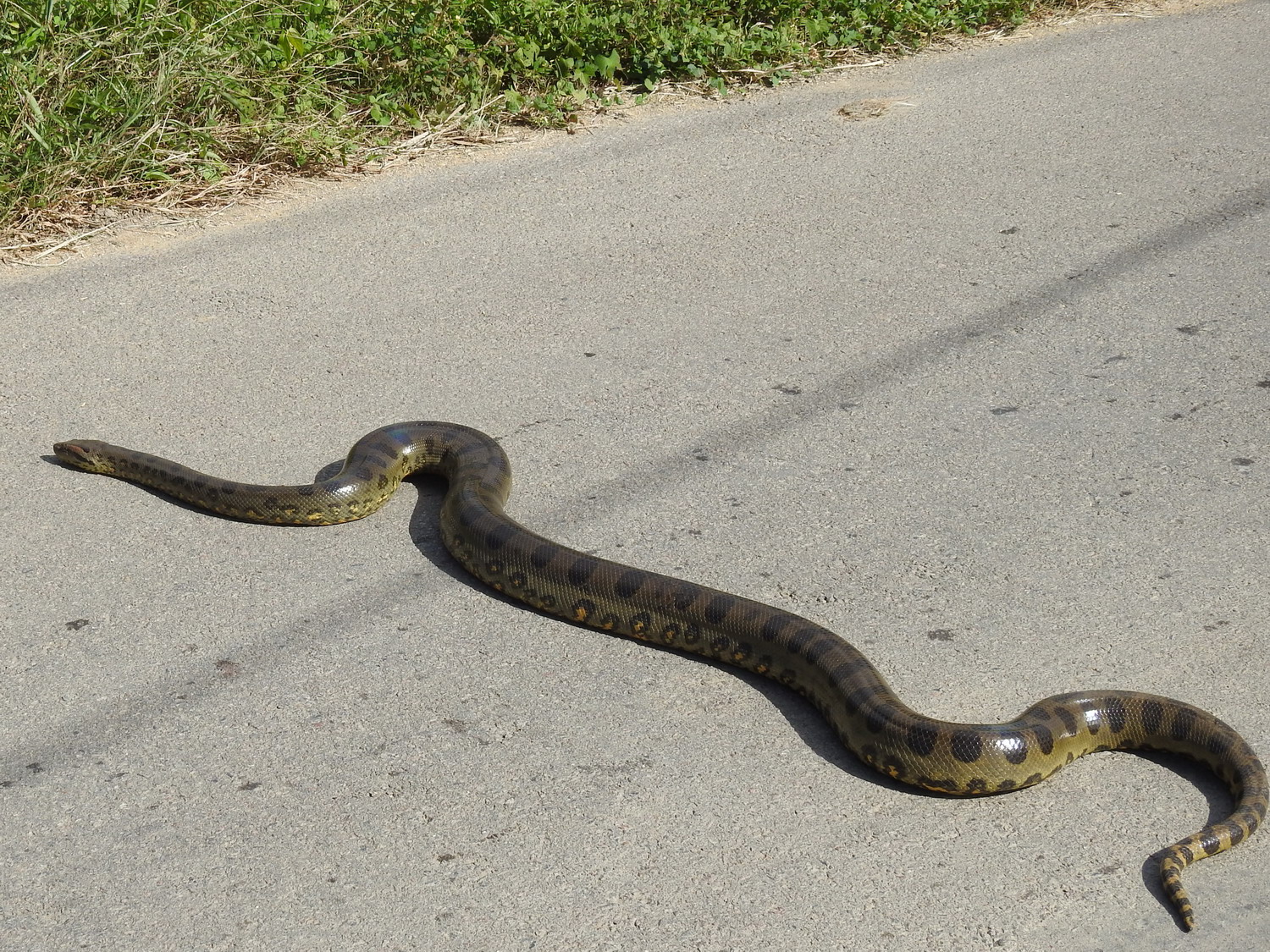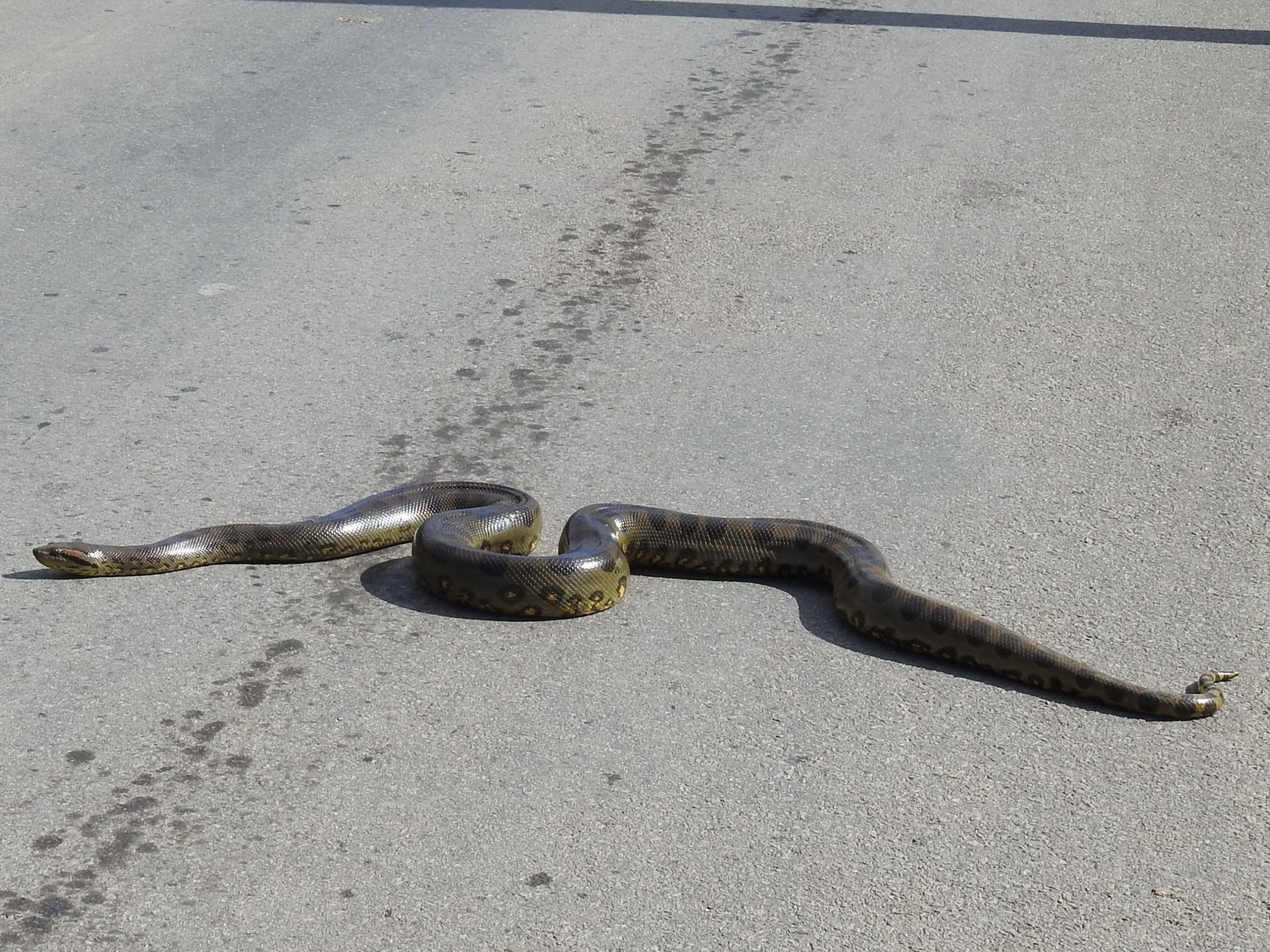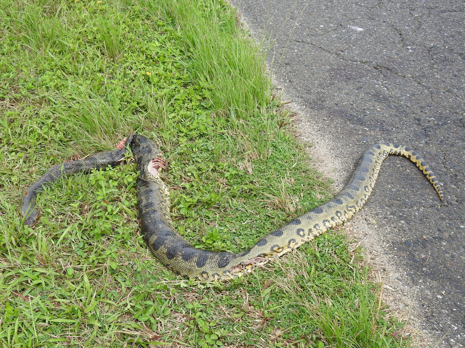 Het kan zomaar gebeuren in Nw Nickerie – een anaconda die de straat oversteekt. Ik heb even klaarover gespeeld.